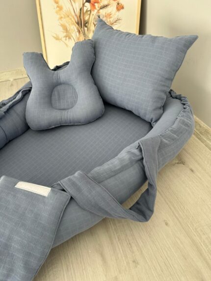 %100 Pamuk Çift Katlı Çift Kullanımlı Anne Yanı Yatağı(İndigo Müslin Vizon Pike)