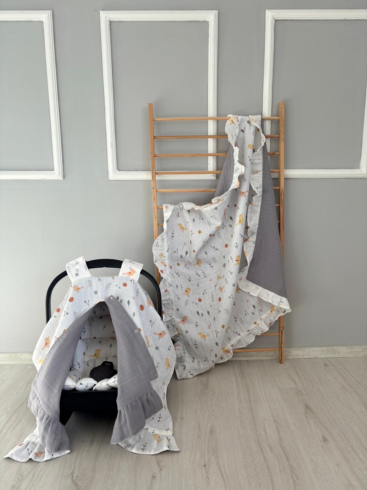 %100 Pamuk Çift Katlı Tasarım Pileli Battaniye Kuş Dsn(90×90)