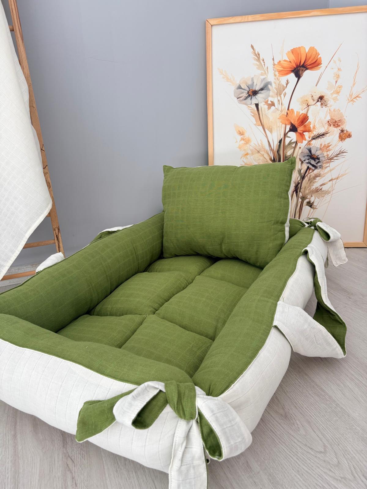 %100 Pamuk Çok Amaçlı Çift Katlı Çift Kullanımlı Müslin Puset Örtüsü Ve Minderi(tasatım yşl)