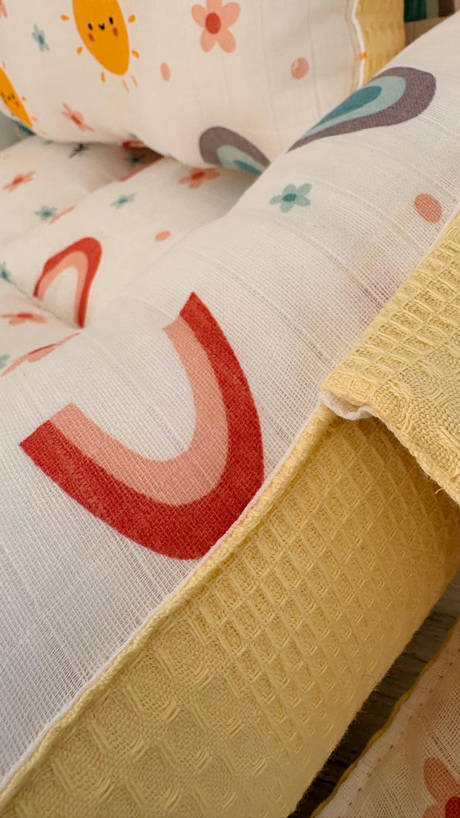 %100 Pamuk Çok Amaçlı Çift Katlı Çift Kullanımlı Müslin Anne Yanı Yatağı Ürünümüz 55×80 ölçülerindedir,çift yönlü kullanma imkanı vardır,ürünümüzün iç kısmı birinci sınıf boncuk elyaf ile doldurulmuştur.; Ürünümüz %100 Pamuk müslin kumaş ve %100 pamuk pikeden yapılmıştır.; Bütün ürünlerimiz sertifikalı ve organik kumaşlardan üretilmişti