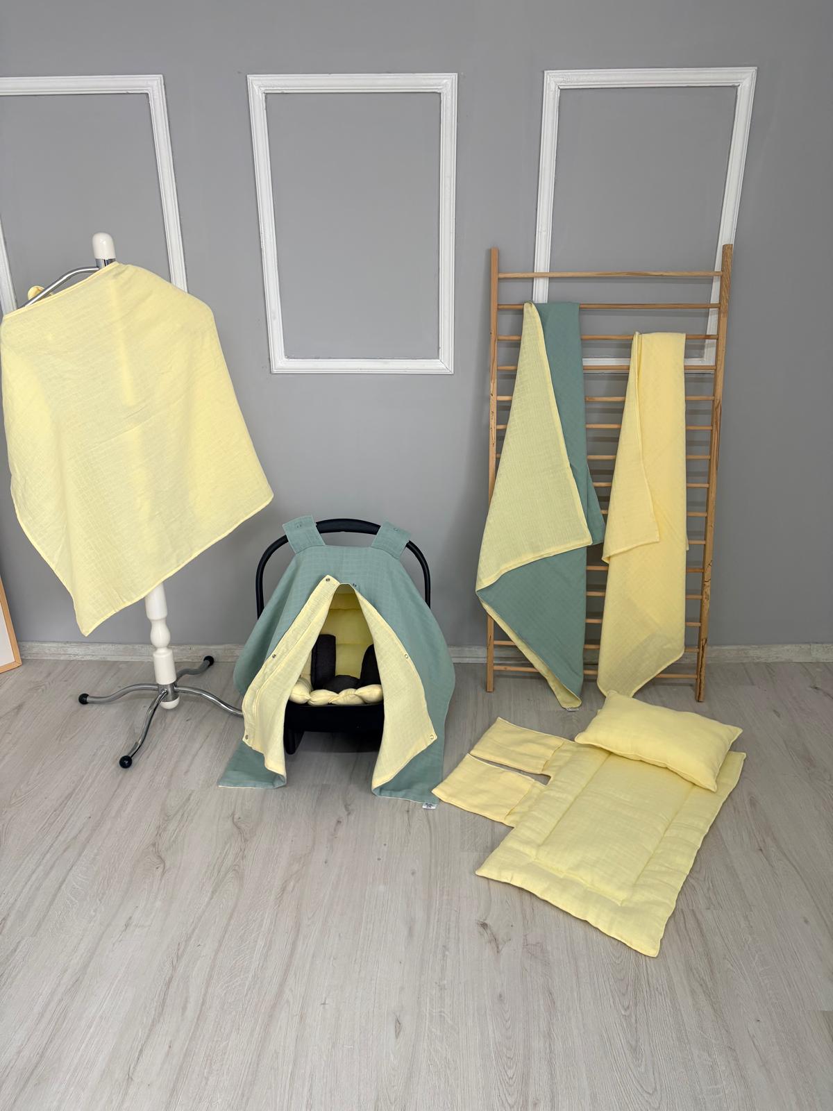 Çift katlı pileli puset örtüsü ve minderi