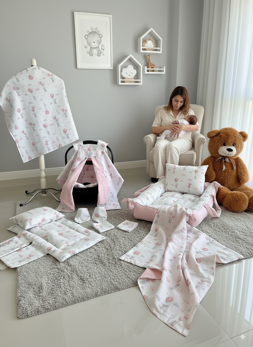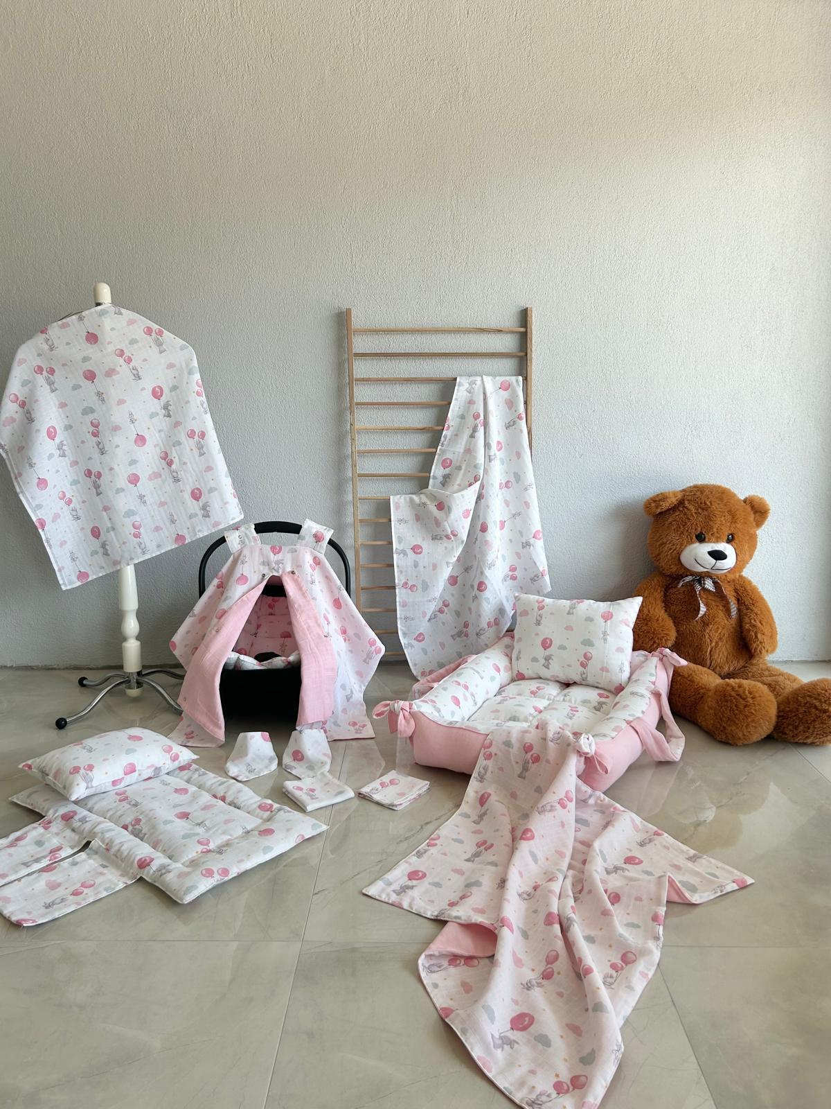 %100 Pamuk Çok Amaçlı Çift Katlı Çift Kullanımlı Müslin Yeni Doğan Bebek Seti 16 Parça Tasarım