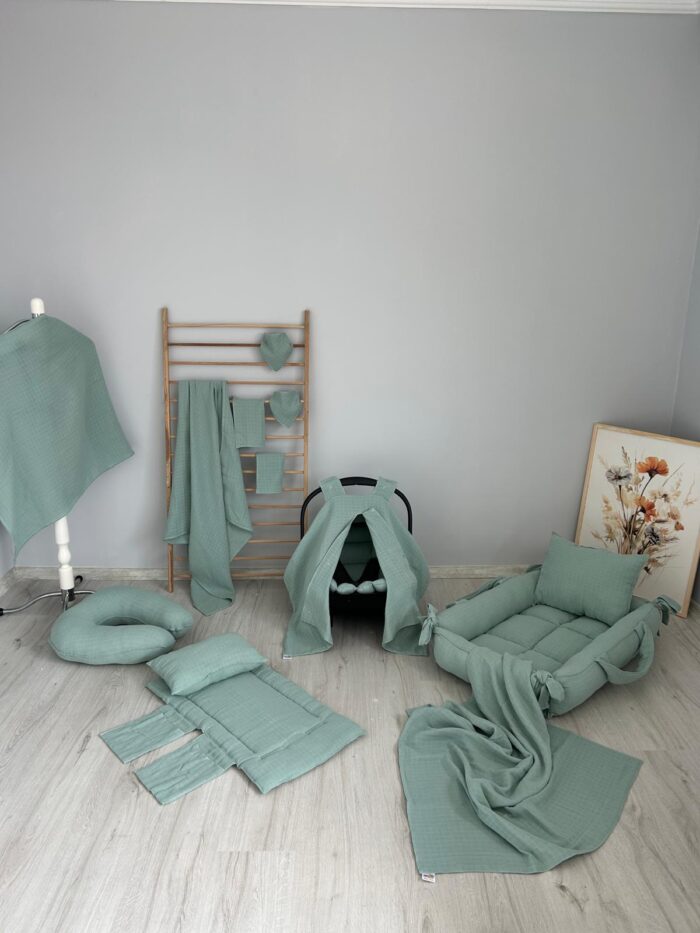 14 Parça Çift Katlı Set Tamamı Nil Yeşili