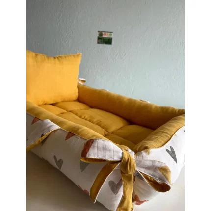 %100 Pamuk Çok Amaçlı Çift Katlı Çift Kullanımlı Müslin Anne Yanı Yatağı Ürünümüz 55×80 ölçülerindedir,çift yönlü kullanma imkanı vardır,ürünümüzün iç kısmı birinci sınıf boncuk elyaf ile doldurulmuştur.; Ürünümüz %100 Pamuk müslin kumaş ve %100 pamuk pikeden yapılmıştır.; Bütün ürünlerimiz sertifikalı ve organik kumaşlardan üretilmişti